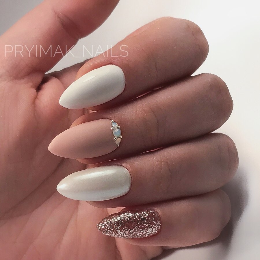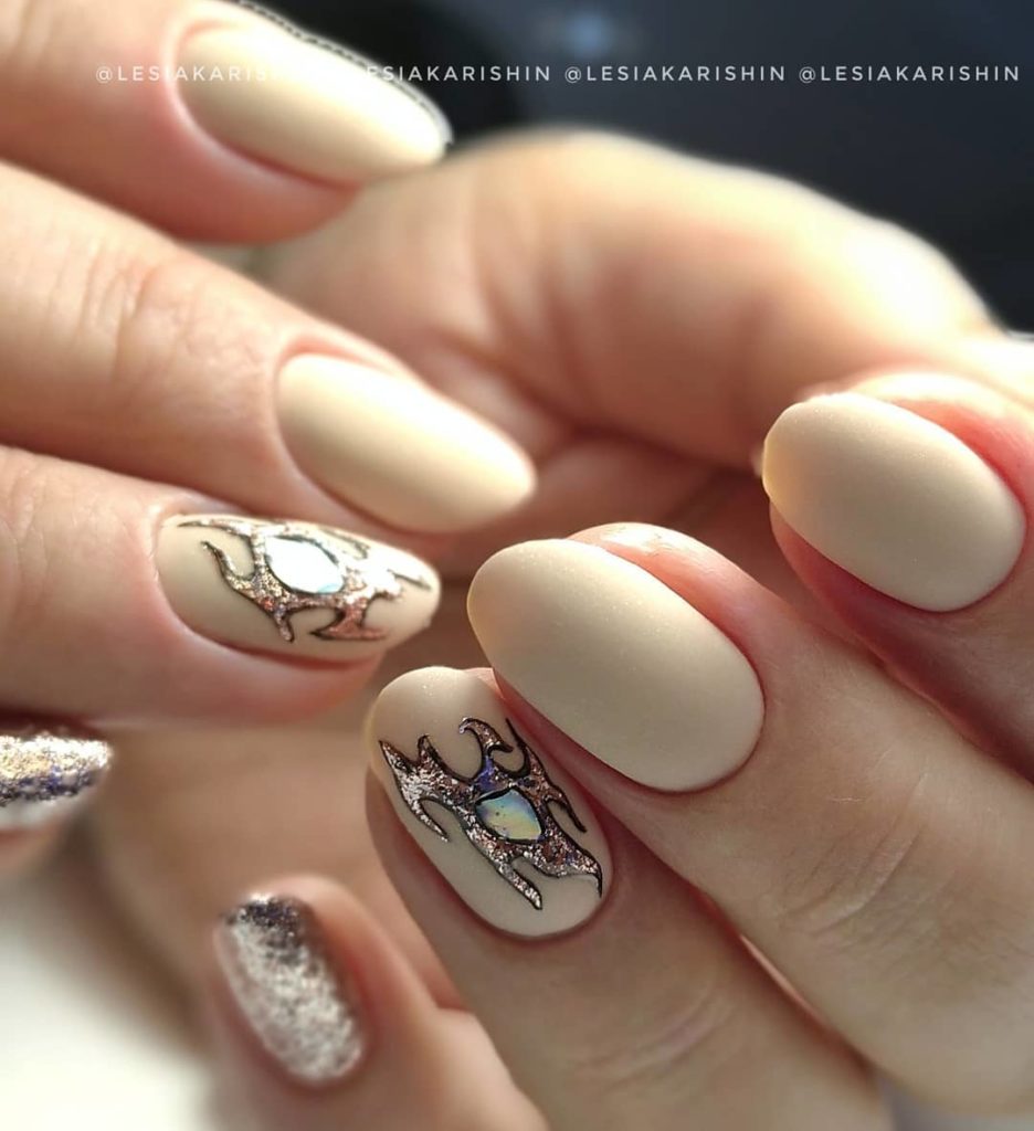 У Кіри є для тебе ще один варіант витонченого оформлення нігтиків – манікюр з кремовим гель-лаком №050 у головних ролях. А лишень уяви, як благородно він виглядає у матовому виконанні! Поєднай цей відтінок зі світлішими пастельними кольорами та додай блискучий декор для акценту – і ти отримаєш неймовірно вишуканий весняний манікюр.
