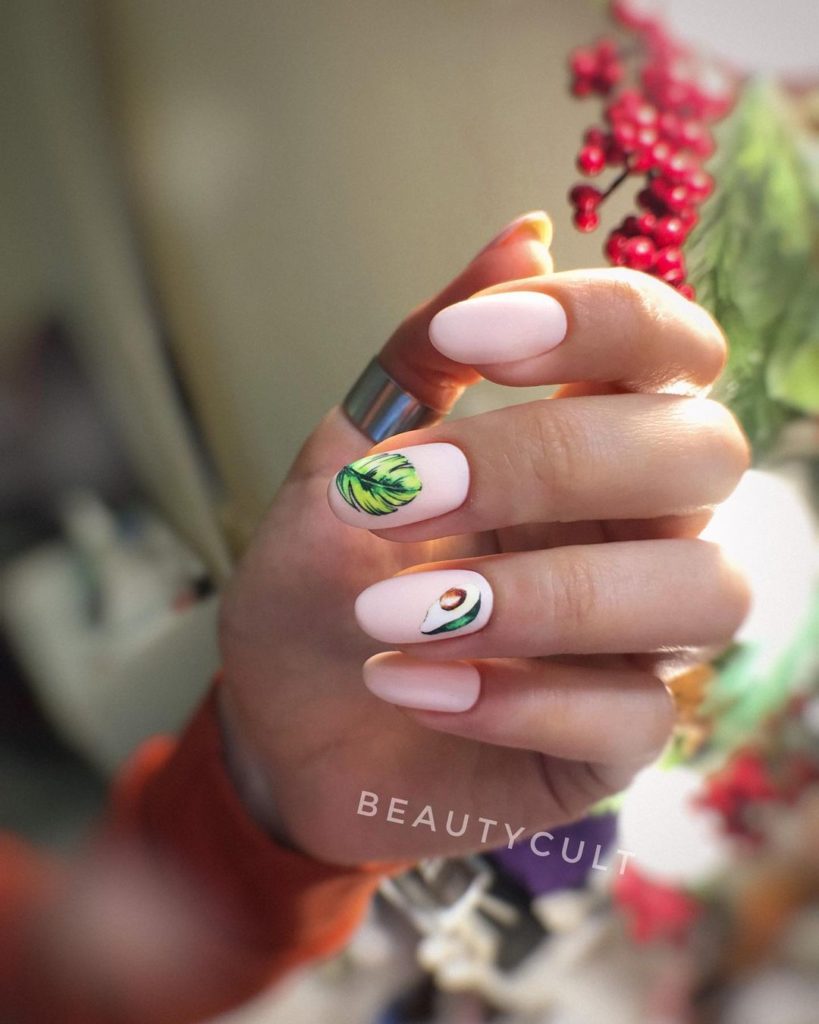 Трохи екзотики ніколи не завадить, особливо якщо мова йде про літній манікюр. Рецепт ідеального покриття простий: кремовий гель-лак №014, трохи яскравих акцентів, наприклад, у вигляді яскраво-зеленого пальмового листя та зображення авокадо – і ти готова підкорювати пляжну вечірку