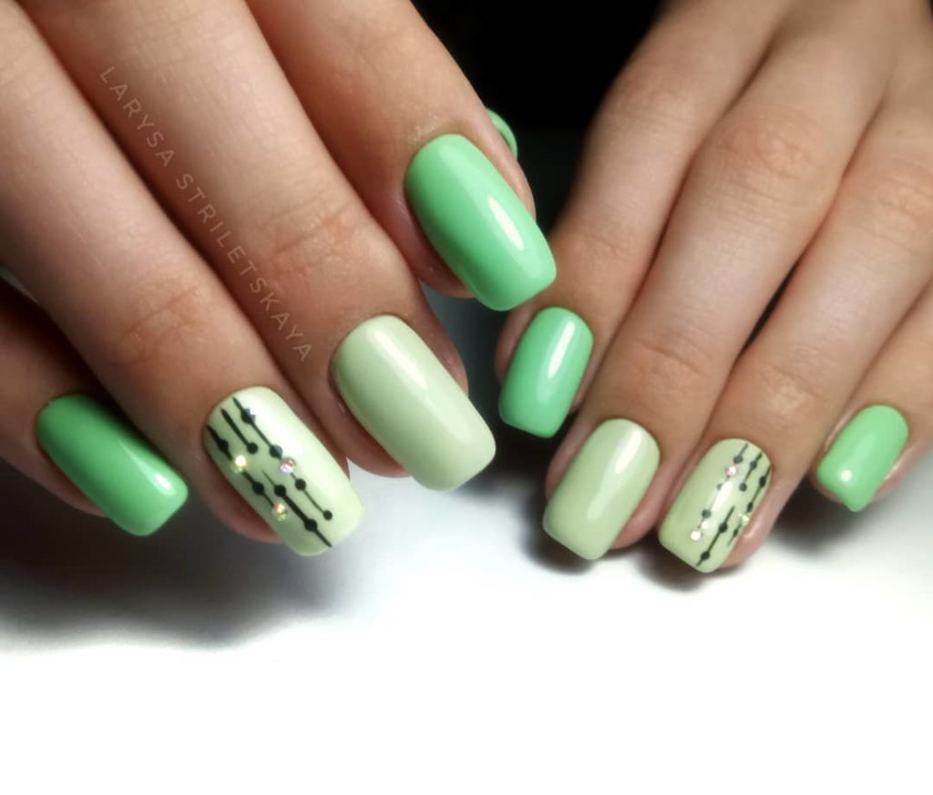 Пам’ятаєш, Кіра вже говорила про трендові ніжно-зелені відтінки? Спробуй ще й яскраві – а салатовий гель-лак №024 тобі у цьому допоможе! Цей колір вигідно поєднується зі світлішими тонами зеленого та вишуканим декором зі стразами. В одній комбінації вони створять настрій ранньої весни, що налаштовує на легкість і надихає