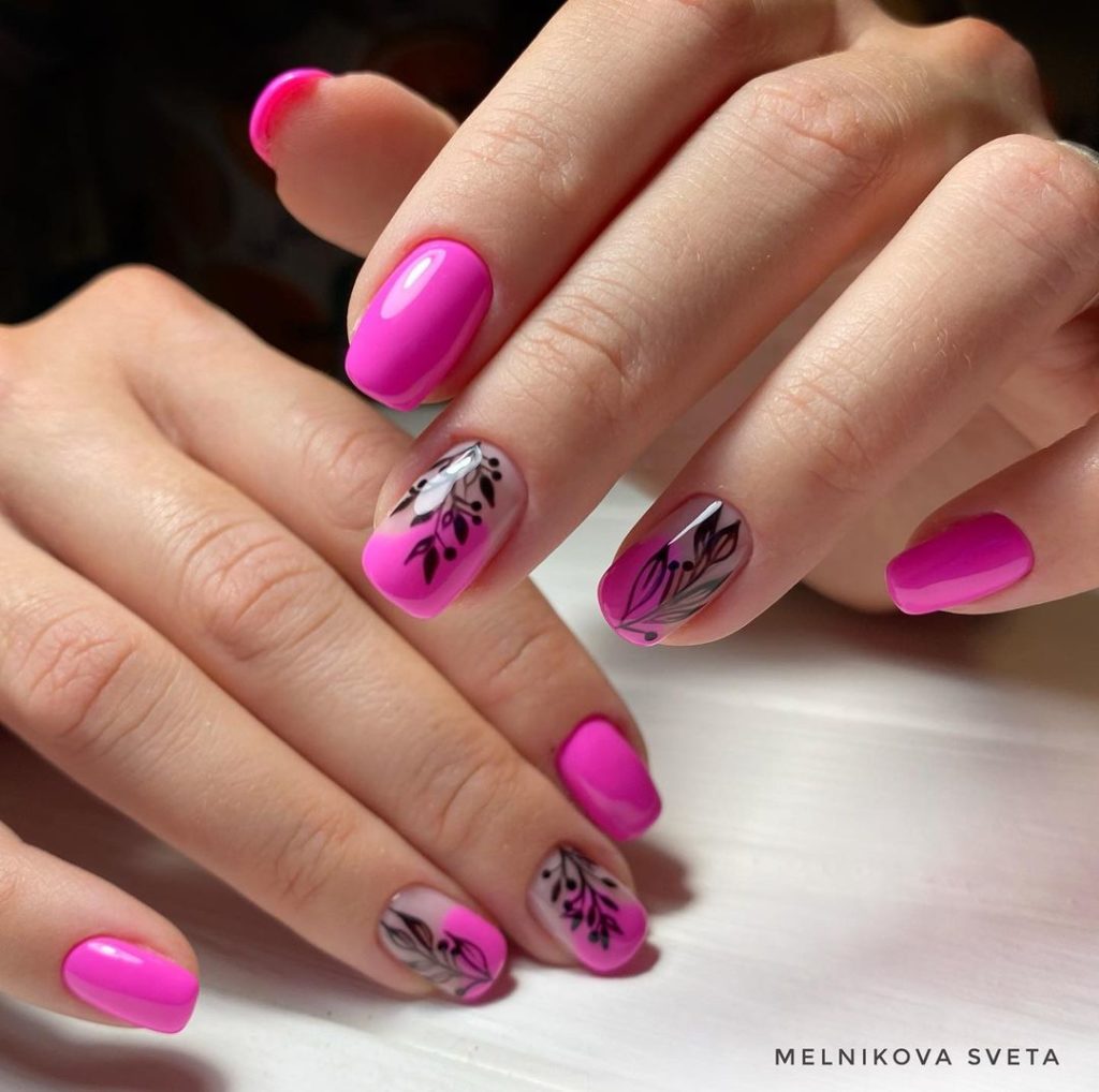 Приглушена рожева фуксія однозначно приверне увагу будь-кого! Додай рослинних орнаментів – і отримаєш трохи ніжності навіть на мегаяскравому покритті.