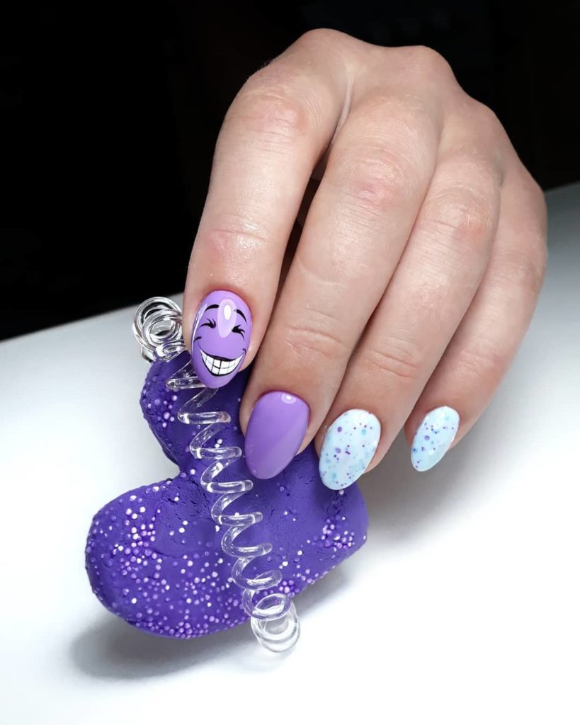 Веселе покриття = гарний настрій! А рецепт, як його створити, простий. Покрий кілька нігтиків гель-лаком Yoghurt Boom! №007 KIRA NAILS, інші – яскравим кольором, наприклад, фіолетовим, і намалюй усміхнене емоджі