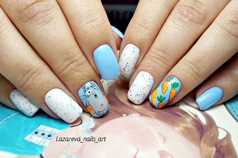 А для дизайну ти можеш використовувати будь-які мотиви, які тобі лише підкаже фантазія. Чи це будуть кролики з морквою, чи летерінг, чи інший розпис або принт – вирішуй сама. Головне, щоб настрій був відповідним