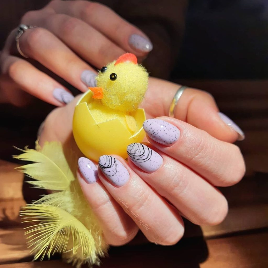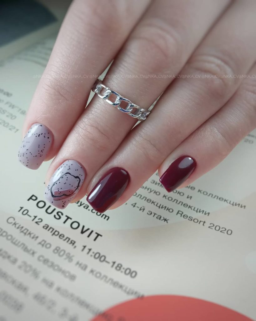 Не менш стильно у поєднанні з абстракціями виглядає гель-лак Чіа Пудинг №007 KIRA NAILS. Ожиновий відтінок чудово доповнить розпис-павутинка. Ніжні тонкі лінії та елегантні цяточки – це ж саме те, що треба для весняно-літнього настрою!