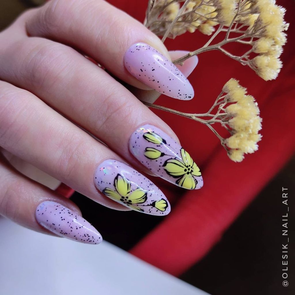 Квіти та лаки – “йогурти” від Кіри – ще одне неймовірне поєднання! Кольорові частинки буквально перевтілюють нігтики. Наприклад, зроби покриття гель-лаком Yoghurt Boom! №003 KIRA NAILS та додай трохи квіткових композицій