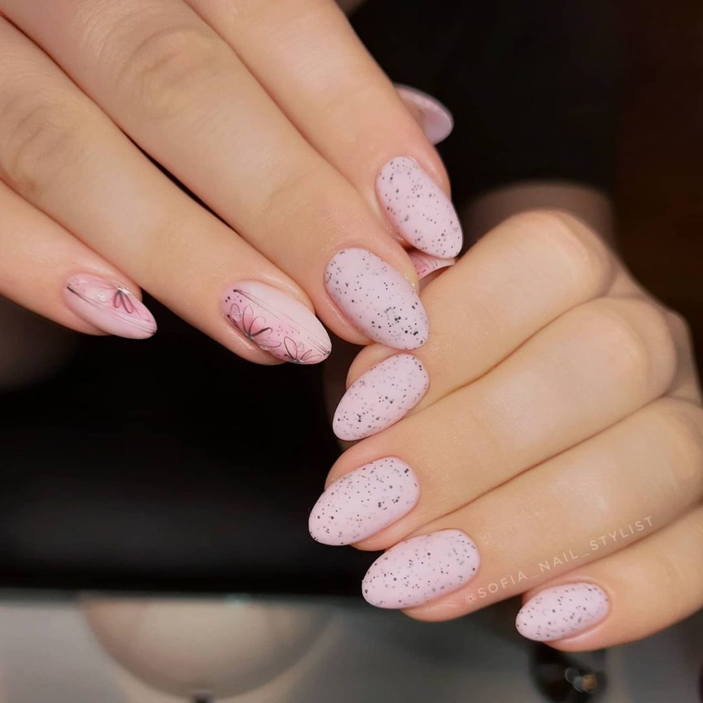Наприклад, ти можеш скомбінувати в одному манікюрі гель-лаки №087 (світло-бузковий) і №105 (ніжно-рожевий) з основної колекції та гель-лак Чіа Пудинг №006 у чорничному відтінку. Додай ще трохи більших крапочок, використовуючи чорну гель-фарбу від Кіри – і отримаєш просто розкішний дизайн!