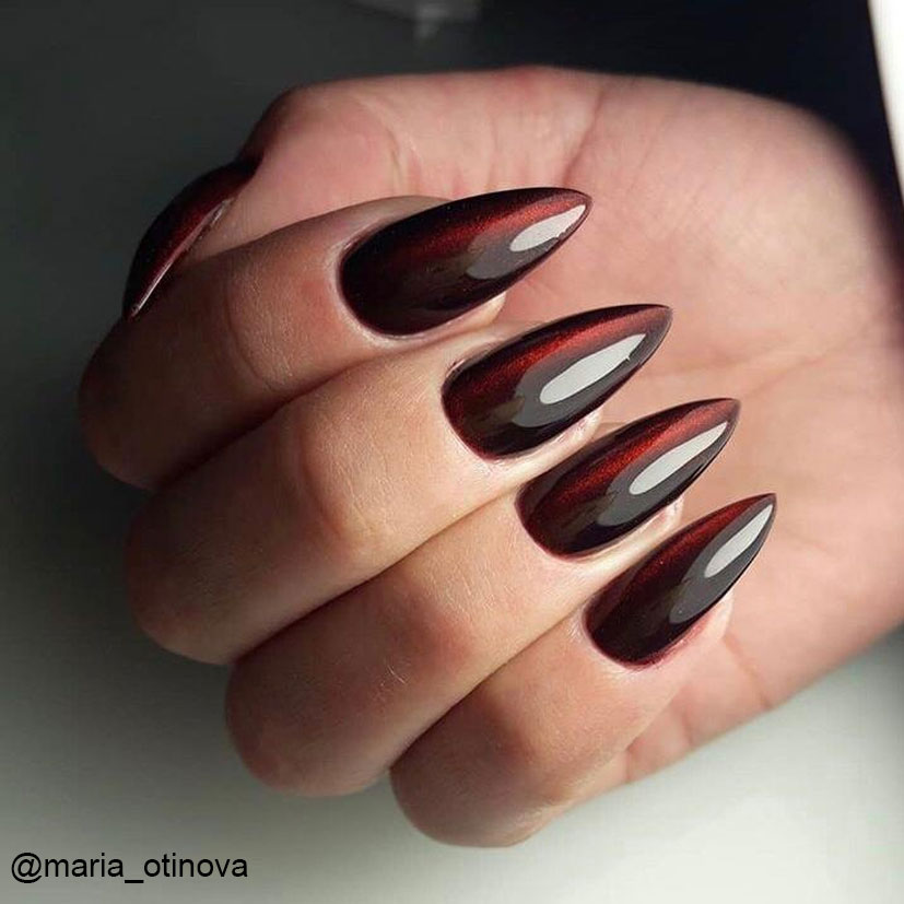 Глибину та соковитість кольору неможливо порівняти з жодними іншими видами прикрас на нігтях. Особливо популярними стали темний ялиновий, гіпнотичний гренадин і сапфіровий колір. Вони додадуть манікюру вишуканої глибини та 3D-об’єму.