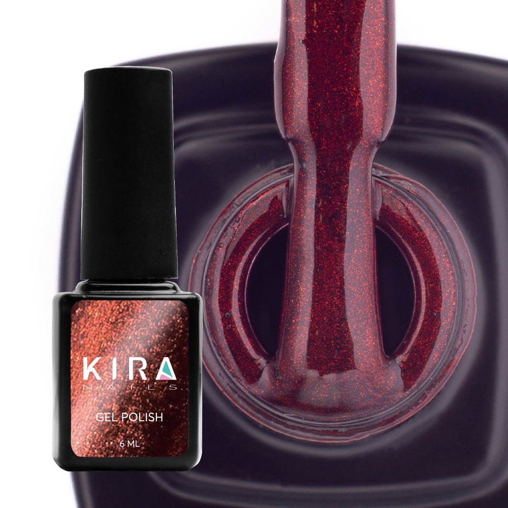 Гель-лак Kira Nails Cat Eye №004 (бордово-коричневий, магнітний), 6 мл