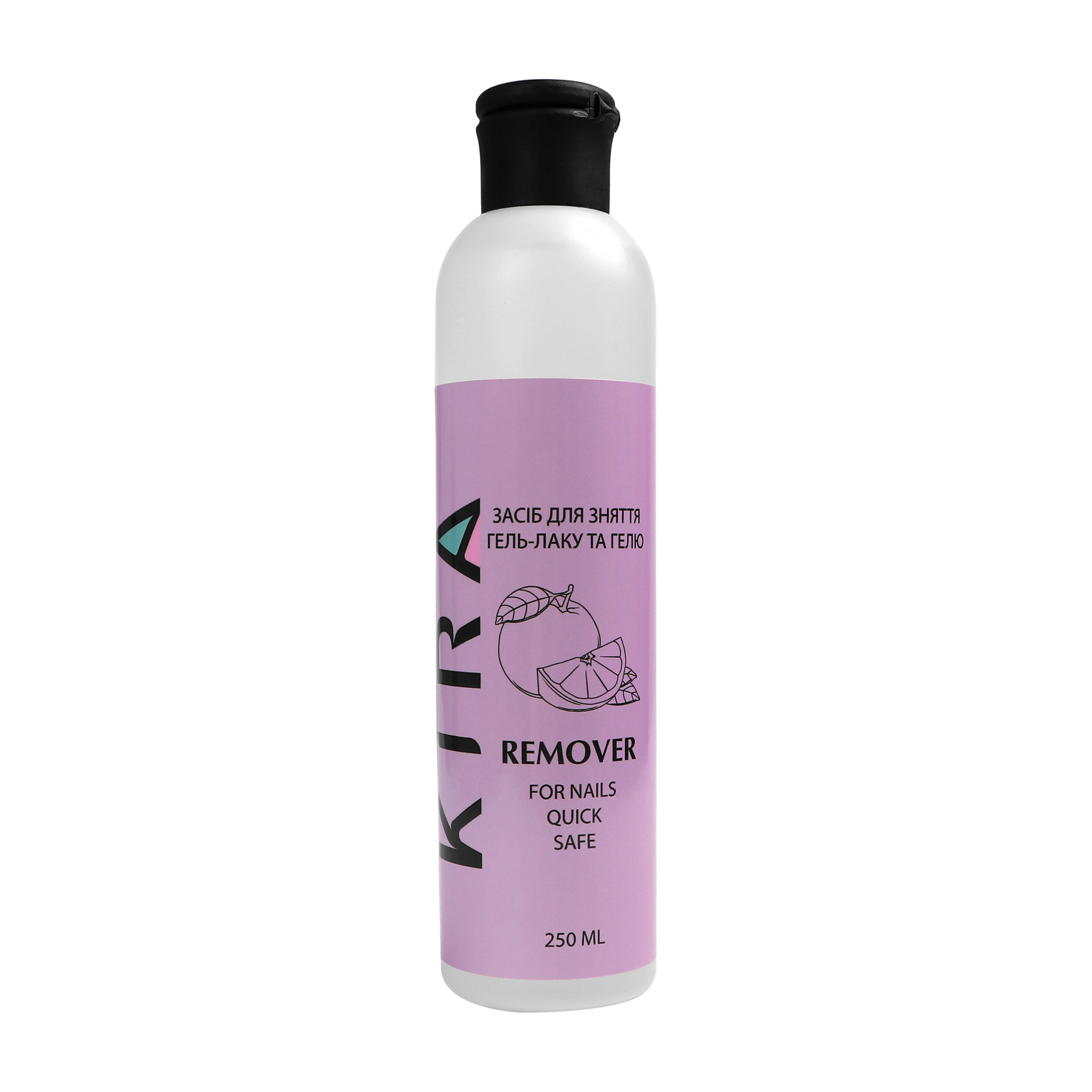 Професійний засіб від Kira Nails швидко й ефективно розчиняє гель-лаки та гелі. Препарат не пошкоджує нігтьову пластину. Під дією засобу гель-лак і гель знімаються м’яко та без зусиль. Має приємний аромат апельсина.